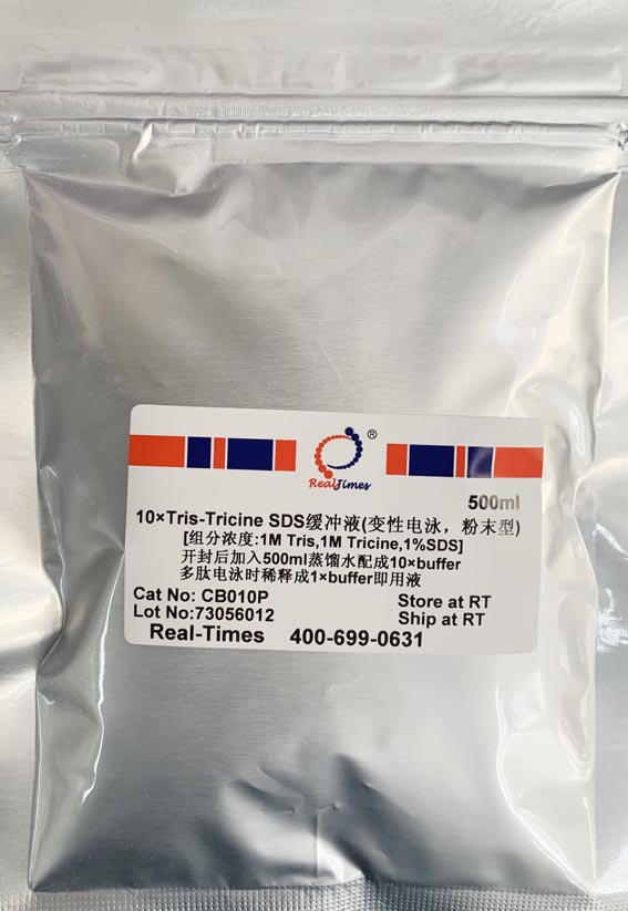 說明:開封后將全部干粉溶于500ml蒸餾水中即配成10×TrisTricine-SDS緩沖液,電泳時(shí)稀釋成1×緩沖液即用液,不要調(diào)節(jié)pH。用于超低多肽電泳使用。