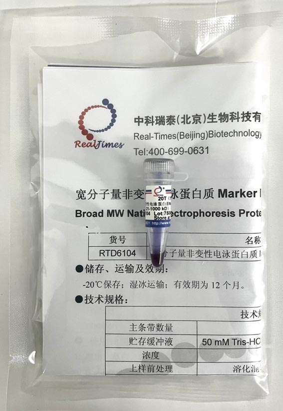 2. 非變性蛋白電泳Marker由于要保持蛋白的天然結(jié)構(gòu),都沒有偶聯(lián)染料,在電泳時(shí)基本都看不到條帶;但是RTD6104中的440