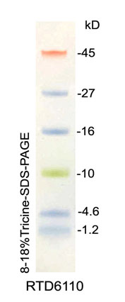 Marker: RTD6110,彩虹預(yù)染超低分子量蛋白(1.2-45 kD)