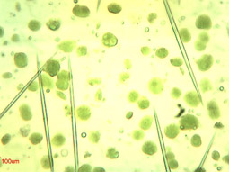 μl葉綠體溶液稀釋20倍,取50 μl稀釋液顯微鏡40倍物鏡觀察,如右圖。