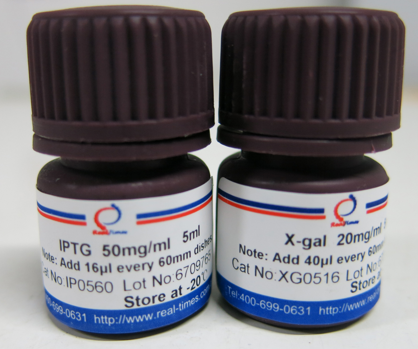 20mg/ml X-Gal 5ml:取100mg X-gal,溶于5ml 二甲基甲酰胺(DMF),棕色瓶中-20℃貯存。此試劑無需滅菌。