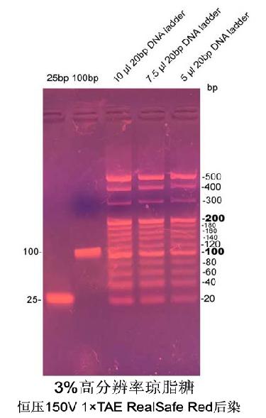 PCR級(jí)高分辨率瓊脂糖(High Resolution Agarose)對(duì)PCR 產(chǎn)物,小片段DNA 具有很高的分辨率,可以和聚丙烯酰胺相媲美,適宜分離 20 bp - 800 bp DNA片段。