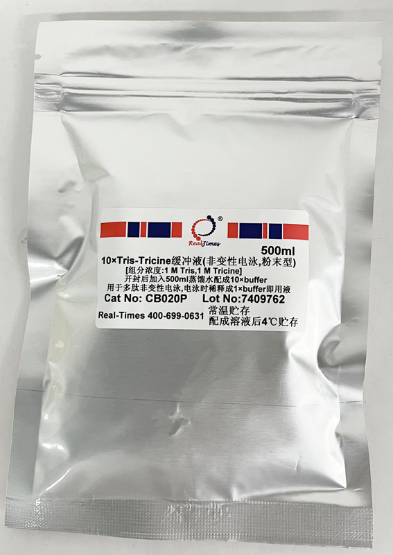 說明:開封后將全部干粉溶于500ml蒸餾水中即配成10×Tris-Tricine緩沖液,電泳時稀釋成1×緩沖液即用液,不要調節(jié)pH。