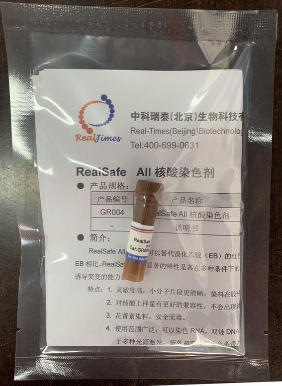 RealSafe All是一種可以替代溴化乙錠(EB)的紅色熒光核酸染色劑,與GelRed是類似產品。與SYBR或EB相比,RealSafe All最顯著的特性是其在多種條件下的高靈敏性和穩(wěn)定性。另外相對EB或SYBR,RealSafe Red誘導突變的能力極低。