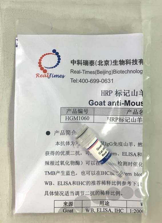 本抗體為用純化的小鼠IgG免疫山羊,然后用親和純化柱對獲得的抗血清進(jìn)行純化而獲得的優(yōu)質(zhì)二抗,可用于Western、ELISA和IHC等實驗。HRP(horseradish
