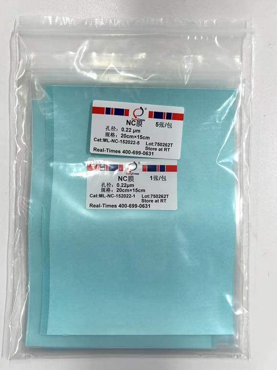 硝酸纖維素膜(Nitrocellulose membrane,NC膜)是蛋白印跡最廣泛使用的轉(zhuǎn)移介質(zhì),對(duì)蛋白有很強(qiáng)的結(jié)合能力,而且適用于各種顯色方法。具有使用方便,易保存(結(jié)合有蛋白的NC膜4℃可保存幾年)等優(yōu)點(diǎn)。NC膜分為0.45μm,0.2μm,0.1μm三種。分子量小于20kD蛋白使用0.2μm,分子量小于7kD蛋白使用0.1μm。本公司產(chǎn)品為孔徑0.22μm NC膜。