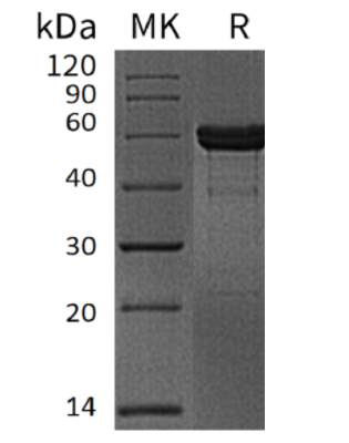 Recombinant Human Matrix Metalloproteinase-3 is produced by our Mammalian expression system and the target gene encoding Tyr18-Cys477 is expressed with a 6His tag at the C-terminus.The proenzyme needs to be activated by Chymotrypsin for an activated form.