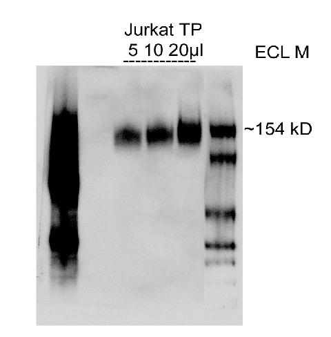 本抗體如果用于常規(guī)的Western檢測(cè),稀釋5000倍,一次使用5 ml稀釋的抗體,至少可以檢測(cè)20次。