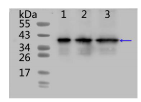Detection: using chemiluminescence substrate and image were captured with CCD camera.