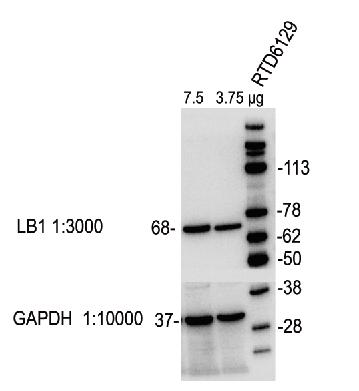 Lamin B1檢測(cè):Anti-Lamin B1抗體(兔單抗)(貨號(hào):RGL1150)1:3000 RT 1h,