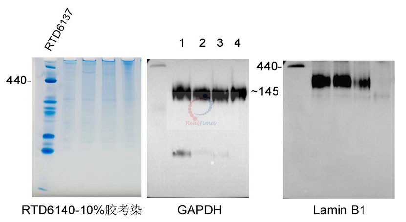樣品4:柱式動(dòng)物胞漿蛋白提取試劑盒(細(xì)胞樣品,非變性提取,不含去垢劑)(貨號(hào):RTD8106)提取樣品;