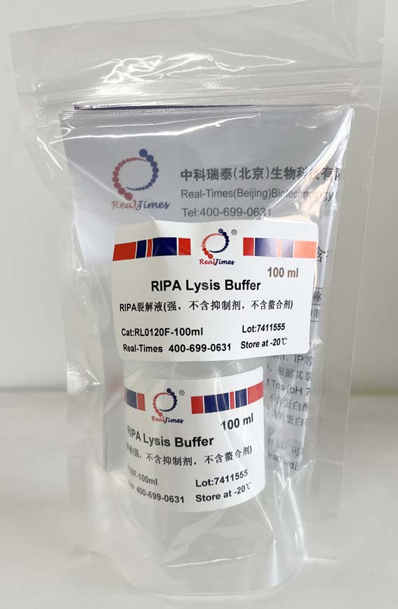 Buffer)是一種傳統(tǒng)的細(xì)胞組織快速裂解液。RIPA裂解液裂解得到的蛋白樣品可以用于常規(guī)的Western、IP等。RIPA的本意是Radio Immunoprecipitation Assay。RIPA裂解液的配方有很多種,根據(jù)其裂解液的強(qiáng)度大致可以分為強(qiáng)、中、弱三類。該RIPA裂解液(強(qiáng))的主要成分為50 mM Tris (pH 7.4),150 mM NaCl,1% Triton