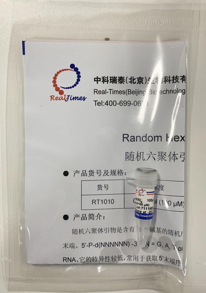 隨機(jī)六聚體引物是含有6個(gè)堿基的隨機(jī)序列引物。5’末端帶有磷酸基,3’末端為羥基末端。5’-P-d(NNNNNN)-3’