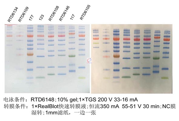 轉(zhuǎn)移效率高:快速轉(zhuǎn)膜液對(duì)分子量跨度較大的蛋白也有很好的轉(zhuǎn)移效率,有效解決了大小蛋白不能在同一張膜上同時(shí)轉(zhuǎn)移的問(wèn)題。