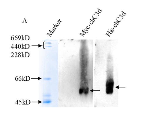 Blue/Clear Native PAGE(BN/CN-PAGE)是一種從生物樣品(質(zhì)膜,胞漿等)中分離分子量10 kD-10 M kD 范圍的蛋白質(zhì)復(fù)合物的電泳技術(shù)。其原理是用溫和去污劑(如 DDM,digitonin)將蛋白復(fù)合體從細(xì)胞膜中以近似天然的狀態(tài)分離出來,Blue Native PAGE (BN-PAGE)是用考馬斯亮藍(lán) G-250 代替 SDS與蛋白結(jié)合而使其帶負(fù)電荷,根據(jù)蛋白分子量不同在 PAGE膠中得到分離;Clear Native PAGE(CN-PAGE)是電泳緩沖液中不加入任何染料,電泳中始終保持蛋白的天然電荷和活性狀態(tài),然而,其蛋白的分辨率要低于Blue Native PAGE。另外,BN-PAGE由于考馬斯亮藍(lán)G-250存在,使蛋白都覆蓋上負(fù)電荷,可以分離堿性蛋白(pI>7)和酸性蛋白(pI<7);而CN-PAGE只適合于酸性蛋白(pI<7)的分離。