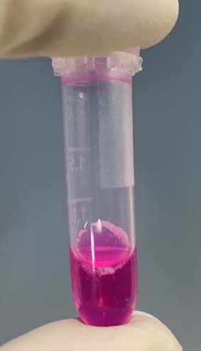 2. 向菌體沉淀的離心管中加入250 μl溶液P1(請(qǐng)先檢查是否已加入RNaseA)和5μl Lysis Dye,使用移液器或渦旋振蕩器徹底懸浮細(xì)菌細(xì)胞沉淀,此時(shí)溶液為渾濁的紅色。