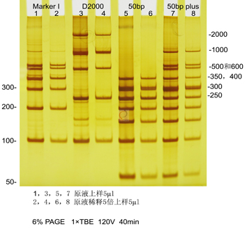 for Nucleic Acids)是一種快速簡(jiǎn)單、可用于聚丙烯酰胺凝膠中的核酸檢測(cè)的試劑盒。該方法檢測(cè)靈敏度比 EB 高達(dá) 200 倍,能檢測(cè)到10ng的 DNA條帶,常用于檢測(cè) SSR 標(biāo)記、SNP 標(biāo)記等。