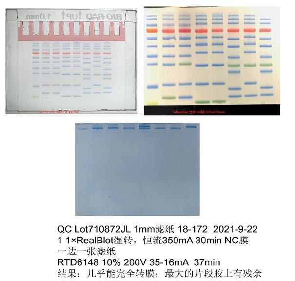 劣質(zhì)濾紙雜質(zhì)離子多,轉(zhuǎn)膜后膠染色結(jié)果